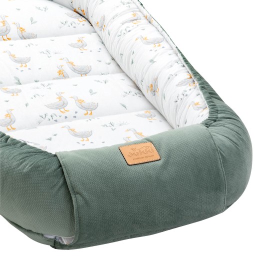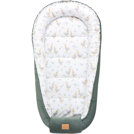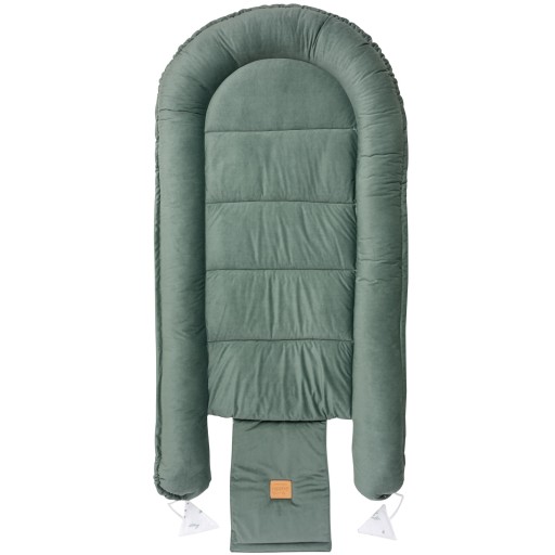 Gniazdko doskonale służy także starszym maluszkom stając się idealną przestrzenią do zabawy, leżenia na brzuszku i pierwszych ćwiczeń – podnoszenia główki czy leżących w jego zasięgu grzechotek. Rozwiązanie sznurków pozwala na używanie kokonu jako przewijaka.