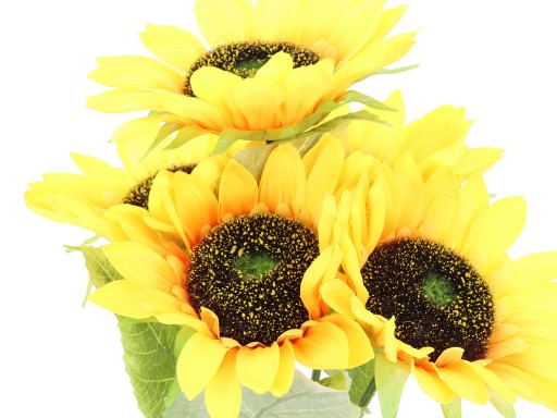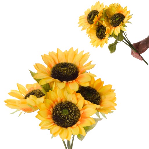 Bukiet słoneczników o wysokości 45 cm został wykonany z wysokiej jakości materiałów, dzięki czemu jest nie tylko przyjemny w dotyku, ale także bardzo wytrzymały na różnorodne uszkodzenia, promieniowanie słoneczne i wilgoć. Bez problemu można je również wyczyścić, jeśli się zakurzą.