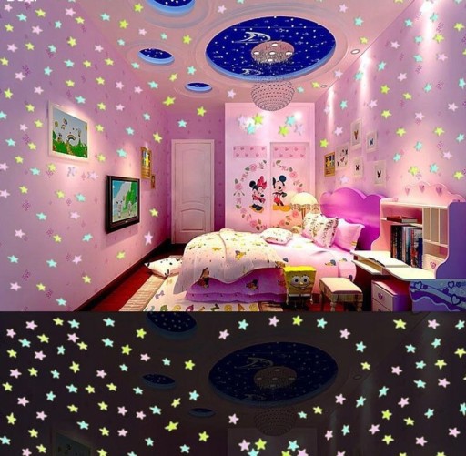 Gwiazdki pochłaniają światło i dzięki temu świecą w ciemnościach. Doskonale nadają się na dekorację pokoju dziecięcego (np. na suficie). Łatwy montaż na dowolnej powierzchni dzięki zastosowaniu dwustronnych naklejek.