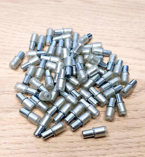 BOLCE PODPÓRKI KOŁKI DO SZEFEK SZAF POD PÓŁKI MEBLOWE Z PŁYTY MEBLOWEJ fi5 CHROMOWANE ŁATWY MONTAŻ DO MEBLI AKCESORIA MEBLOWE KOMPONENTY MEBLOWE PODPÓRKA PÓŁKI