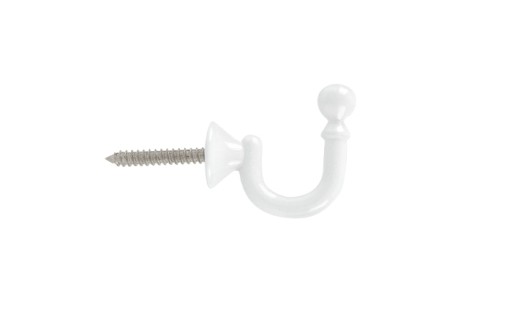 Mały uniwersalny haczyk do upinania firan o długości po zamontowaniu 30 mm. Uchwyt stosowany jest do ozdobnego upinania firan lub zasłon.