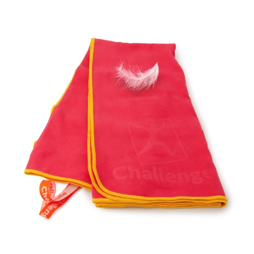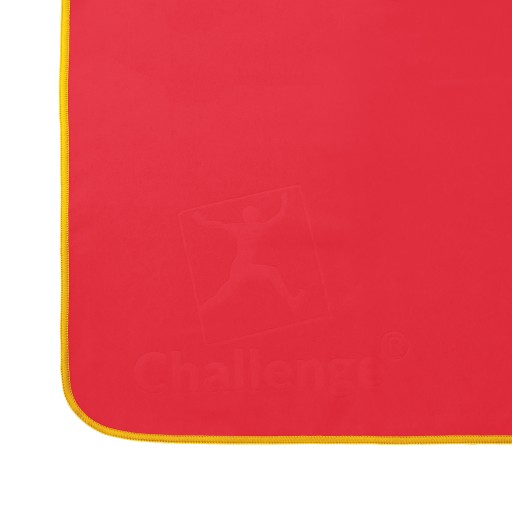 Tłoczone logo Challenge na ręczniku nadaje mu indywidualny charakter.