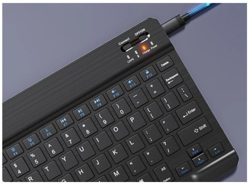 - Możliwość pracy w znacznej odległości od urządzenia: Dzięki zastosowaniu najnowszego modułu bluetooth zasięg klawiatury wynosi około 10m
