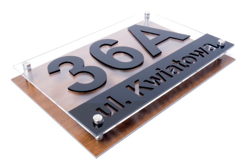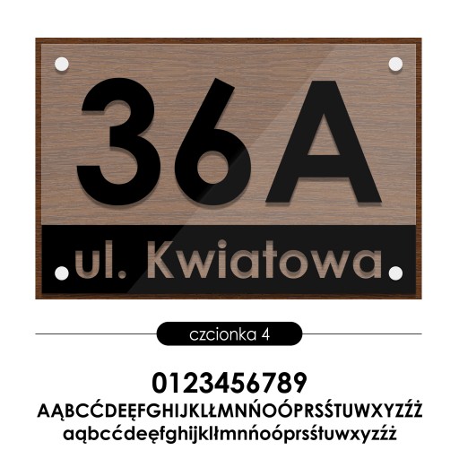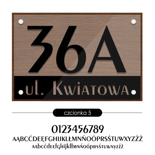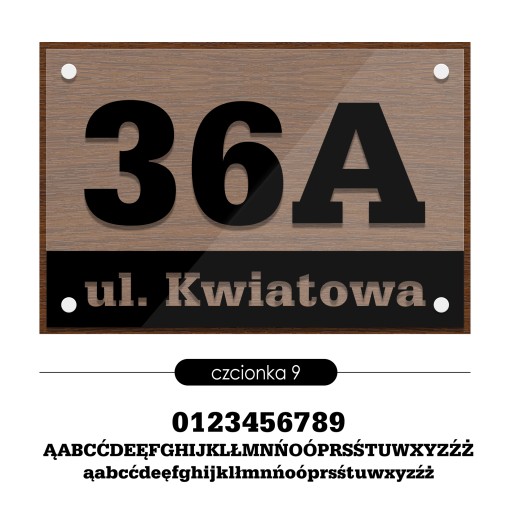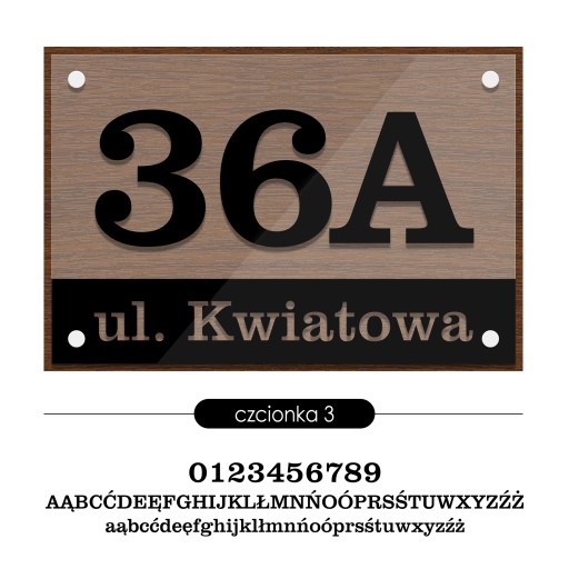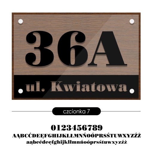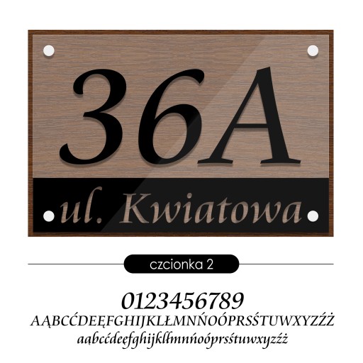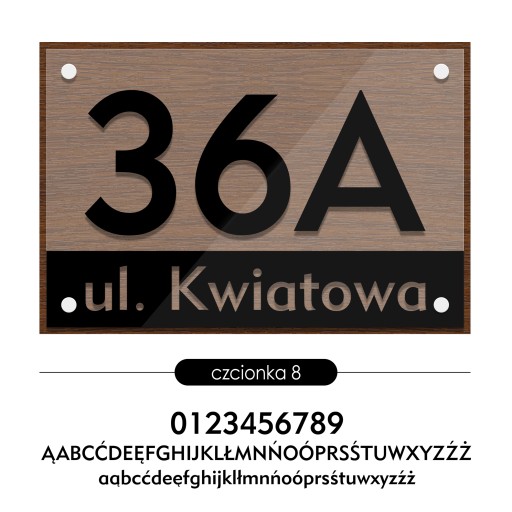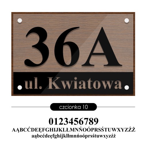 Tablica adresowa 30x20 aluminium z fakturą drewna - 10 czcionek.