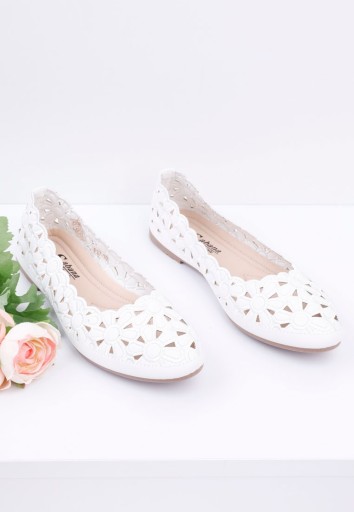 BIAŁE BALERINKI DAMSKIE AŻUROWE BUTY PŁASKIE WKŁADKA EKOSKÓRA WYGODNE
