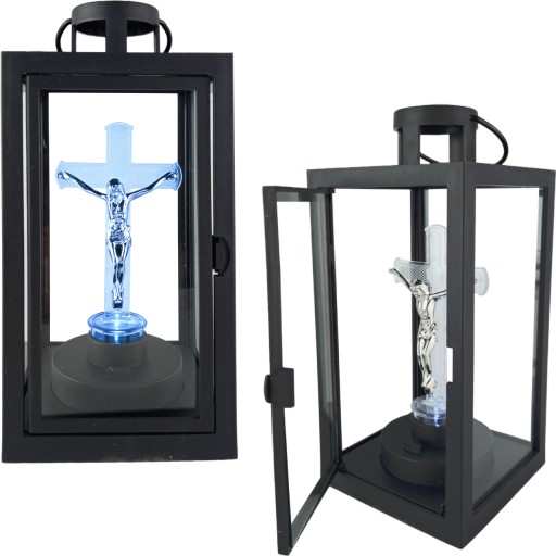 CZARNA LATARENKA Z KRZYŻEM NA BATERIE