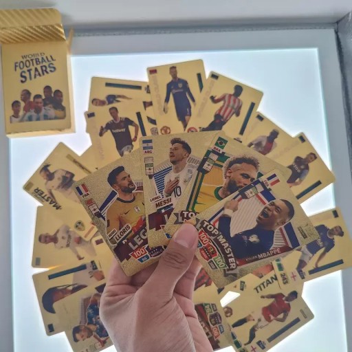 - Podkreśl swoje zamiłowanie do piłki nożnej i podniesionej na wyższy poziom kolekcjonerstwo dzięki naszym Złotym Kartom Piłkarskim. Każda karta to nie tylko hołd dla ulubionego piłkarza, ale też szansa na podziwianie unikalnego designu i piękna złotego wykończenia. Zamów swój zestaw już dzisiaj!