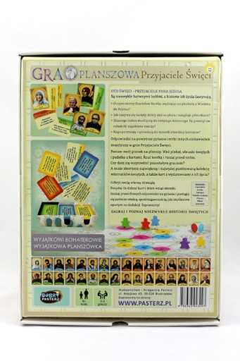 Postaw swój pionek na planszy. Weź plakat, obrazki świętych i pudełko z kartami. Rzuć kostką i ruszaj przed siebie. Czy pozwolisz wyprzedzić się pozostałym graczom? A może zbierzesz największą i najwyżej punktowaną kolekcję wizerunków świętych, a także kart z wydarzeniami z ich życia?