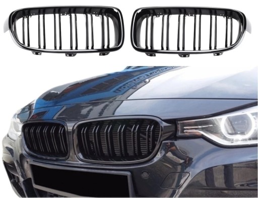 Przedni Grill Nerki do Samochodu BMW F30 F31 Czarne Błyszczące