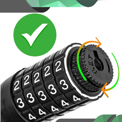 - Zamek blokady jest wyposażony w 5-cyfrowy szyfr, co oznacza, że masz aż 100 000 różnych kombinacji, dzięki czemu zwiększasz bezpieczeństwo przed niepożądanym dostępem.