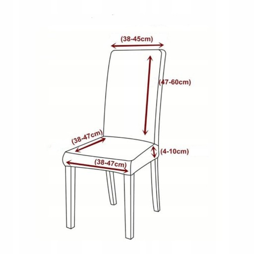 Nie musisz martwić się kształtem oparcia- nasze pokrowce pasują na wszystkie krzesła, których wymiary zgodne są z zamieszczonymi poniżej;