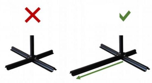 Parasol wyposażony jest w duży i solidny stojak, który wykonany jest ze stali malowanej proszkowo. Obecność stojaka zapewnia stabilność, przez co parasol nie jest narażony na przewrócenie pomimo silnego wiatru. Głównym atutem stojaka jest wydłużenie przedniej nogi. Taki rodzaj konstrukcji zwiększa stabilność podczas użytkowania.