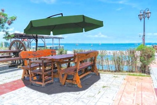 Parasol został wykonany z wysokiej jakości materiałów. Jego głównym atutem jest zastosowanie wodoodpornego materiału.