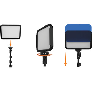 Montaż panelu lampy - Włóż panel lampy LED do śruby na stojaku trójnożnym i zamocuj lampę LED, obracając rolkę w kierunku przeciwnym do ruchu wskazówek zegara.