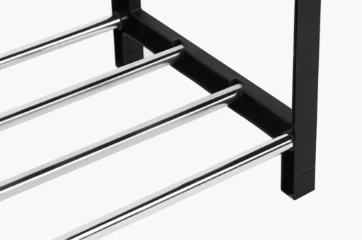 Regał jest wykonany z rurek stalowych i solidnych plastikowych połączeń, zapewnia stabilność i wytrzymałość, gwarantując bezpieczne przechowywanie butów.