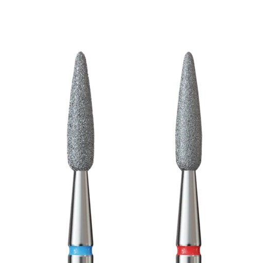 Frezy diamentowe (243R.524.018-021) ze standardowym nasypem są idealne do pierwszego etapu opracowywania skórek.