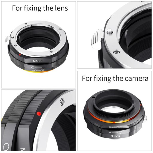 Adapter mocujemy do bagnetu obiektywu MA. Następnie obiektyw z założonym adapterem mocujemy do naszego body jak standardowy obiektyw. W zależności od modelu aparatu mamy możliwość ustawiania czasu naświetlania lub zdajemy się na tryb automatyczny A i odpowiedni czas naświetlania dobiera sam aparat. Ostrość ustawiamy manualnie, podobnie z przysłoną którą ustawiamy na poprzez ten adapter (wbudowany pierścień do jej zmiany).