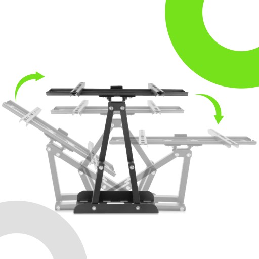 Wieszak pozwala na płynną regulację nachylenia - w górę i w dół od 3° do -15°. Dzięki temu łatwo dostosujesz pozycję telewizora do swojej wygodnej pozycji, niezależnie od tego, czy relaksujesz się na kanapie, czy ćwiczysz przed telewizorem.