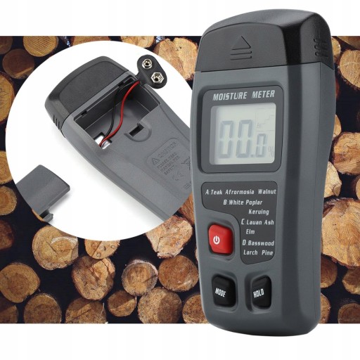 WILGOTNOŚCIOMIERZ DO DREWNA MIERNIK WILGOTNOŚCI TESTER WILGOCI CYFROWY 9V