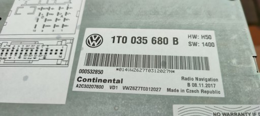 Numery katalogowe radia 1T0035680BX lub 1T0035680B widoczne na zdjęciach.