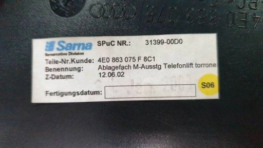 AUDI A8 D3 PODSTAWA TELEFONU TELEFON 4E0863075F W ZAZNACZONYM MIEJSCU PĘKNIĘCIE NIE WIDOCZNE ALE JEST