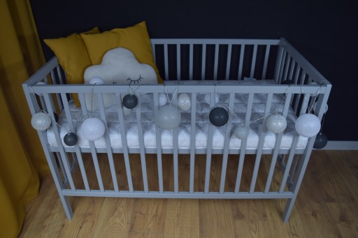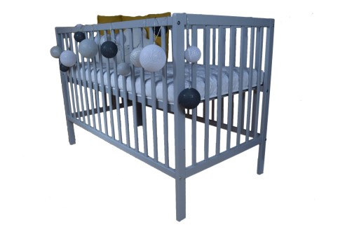 Łóżeczko wykonane jest z drewna sosnowego.