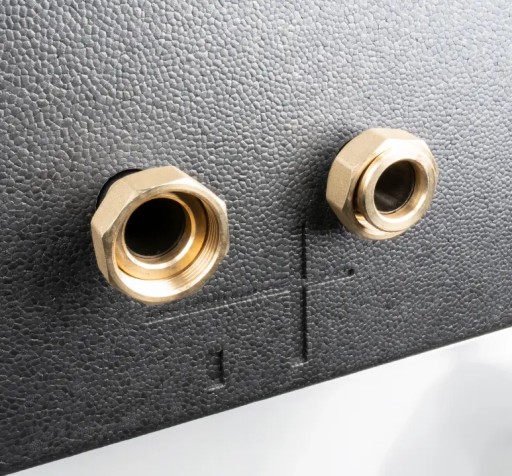 - Dwa mosiężne półśrubunki do połączenia z rozdzielaczem KSV 125 lub grupą pompową PrimoTherm.