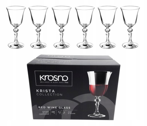 Kieliszki do białego czerwonego o pojemności 220 ml pochodzą z kolekcji Krista. Jest to unikatowy kieliszek z rozchylaną czarką w kształcie tulipana, wyprodukowany przez Krosno Glass. Idealne kieliszki na przyjęcie rodzinne czy spotkanie z przyjaciółmi, aby w pełni cieszyć się aromatem i smakiem czerwonego wina, warto zaserwować je w pięknej i profesjonalnej oprawie. Kieliszki wykonane są ze szkła Crystalline.