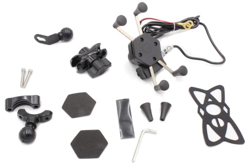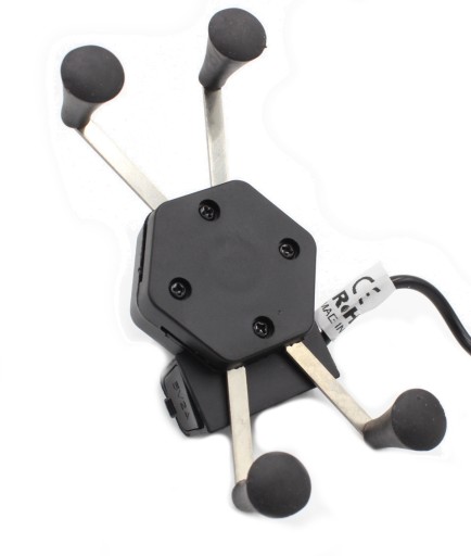Uchwyt posiada uniwersalną ładowarkę USB o natężeniu 2.1 A. Wyjście USB zostało zabezpieczone gumową zaślepką chroniącą przed dostawaniem się kurzu i wody podczas gdy nie jest używane oraz dodatkowo wyposażone w mały, biały wyłącznik umożliwiający odcięcie zasilania gdy uchwyt nie jest używany.