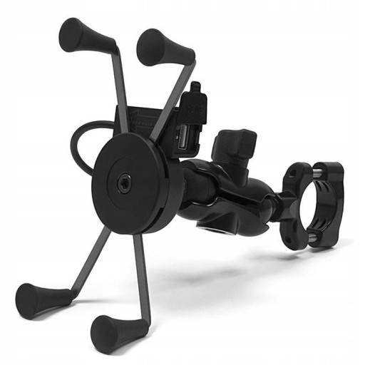 Uchwyt na telefon typu RAM z ładowarką USB na kierownicę lub pod lusterko