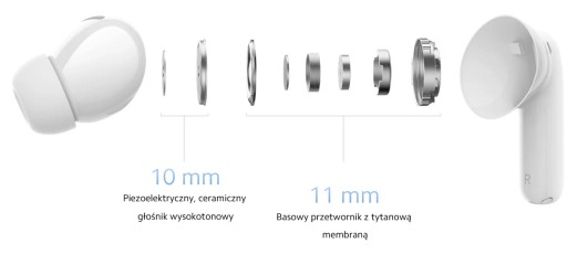 - Pojemność baterii: Słuchawka: 54 mAh, Etui: 480 mAh