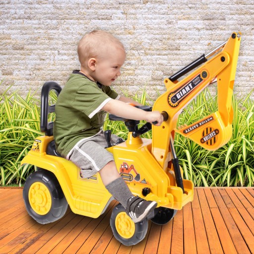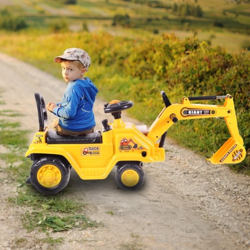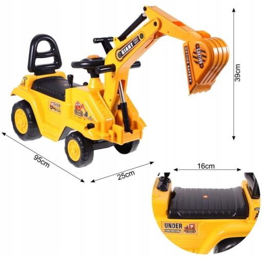 Wykonany jest bardzo realistycznie. Po przekręceniu rączek łycha opuszcza się i jest sterowana przez dziecko. Jeździk koparka jest świetną zabawą, dziecko uczy się nowych rzeczy, sama radość z tego zachęca je do korzystania z jego zalet.