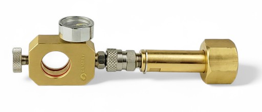 Przetoczka wykonana z mosiądzu i stali nierdzewnej z wbudowaną blokadą butli w odpowietrzniku oraz uszczelnieniami z PTFE.