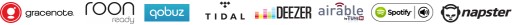 - Obsługa różnych formatów plików, takich jak MQA, DSD (64/128), DXD (24Bit / 352,8Khz), MP3, FLAC, FLAC HD (do 24b/192kHz), WAV, WAV HD (do 24b/192kHz), WMA, M4A, AAC, HD AAC, APE/CUE, ALAC, Ogg Vorbis, PCM i innych oraz playlist PLS i M3U