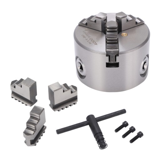Konstrukcja 3-szczękowa, samocentrująca, szeroko stosowana w tokarkach do obróbki drewna.