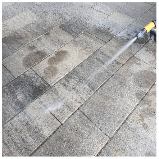 Kolejne etapy usuwania plam z kostki brukowej czy posadzki betonowej: