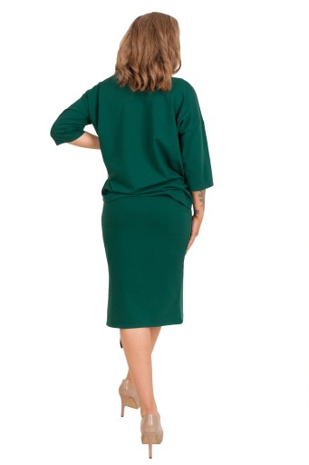 Komplet składa się z bluzki z rękawem kimonowym i z kieszonką oraz wygodnej spódniczki.