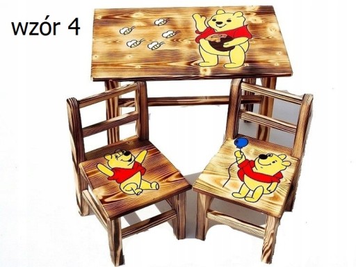 DREWNIANY STOLIK + 2 KRZESŁA- ręcznie malowane postacie!