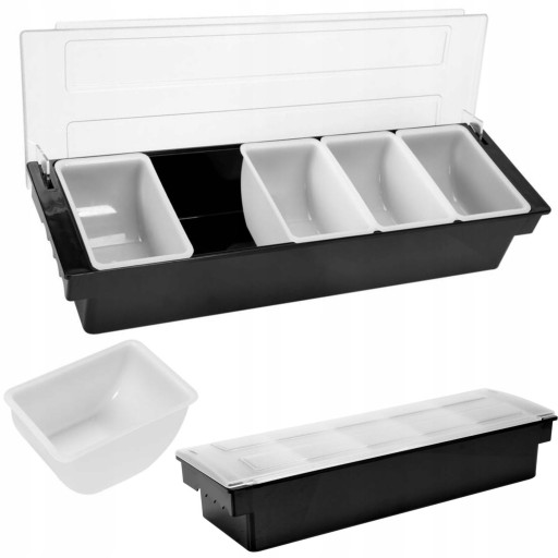YATO BARTMAN КОНТЕЙНЕР ДЛЯ ОЛИВОК И ЛИМОНОВ ДЛЯ НАПИТКОВ, ЧЕРНЫЙ, 5 ВСТАВОК
