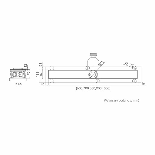 Odpływ liniowy z odpornego na korozję aluminium anodowanego. Korpus syfonu, dzięki zastosowaniu wirowego (szybszego) systemu odprowadzania wody, ma funkcję samoczyszczenia. Zamknięcie wodne mierzy 40 mm, co jest rzadko spotykane w modelach tej wysokości. Promień skrętu obrotowego korpusu wynosi zaledwie 11 cm, a to ułatwia montaż w prawie każdej pozycji. Produkt ma monolityczną konstrukcję i nie wymaga dodatkowych połączeń, dlatego ryzyko przecieku praktycznie nie istnieje. Wymiary odpływu wynoszą 70x8x7 cm.