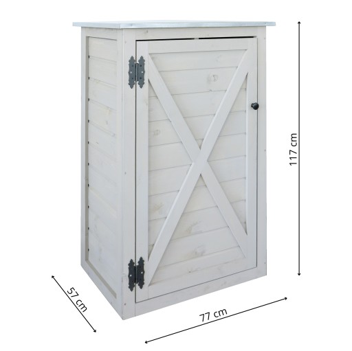 Nasza drewniana szafka ogrodowa z metalowym pokryciem to rozwiązanie, które łączy funkcjonalność i estetykę w jednym. Szafka ta doskonale sprawdzi się jako organizer i schowek w Twoim ogrodzie.