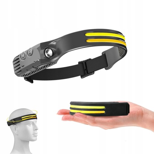 LATARKA CZOŁOWA 2X PASEK COB 30 LED, 1 x XPE + sensor gestów