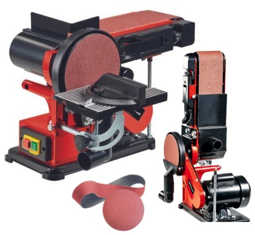 - Funkcjonalna szlifierka stołowa z silnikiem indukcyjnym na taśmę ścierna o wymiarach 915x100 oraz krążkiem ściernym 150 mm.