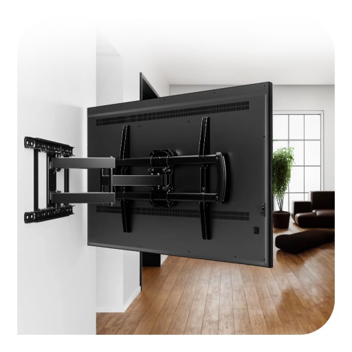 Regulowana odległość od ściany - od 67 do 355 mm - pozwala na dostosowanie wysokości ekranu do poziomu wzroku, co redukuje obciążenie dla szyi i oczu. Umożliwia też stworzenie spójnego i eleganckiego wyglądu pomieszczenia.