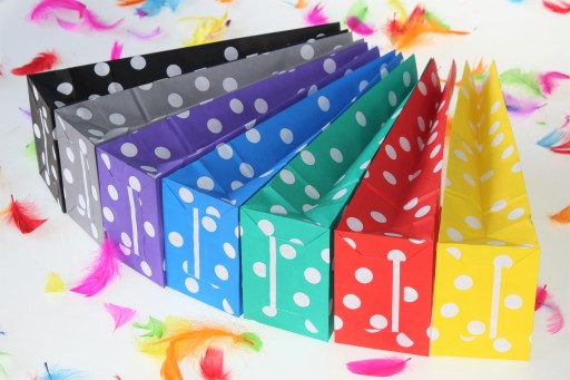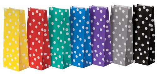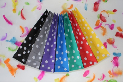 Torebki papierowe PREZENT SŁODYCZE cukierki KLOCKOWE KOLOROWE W GROSZKI