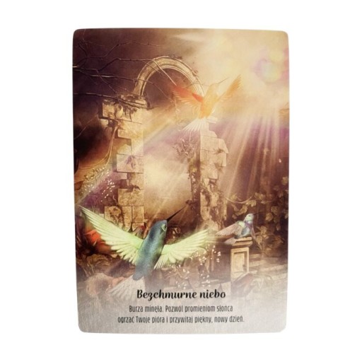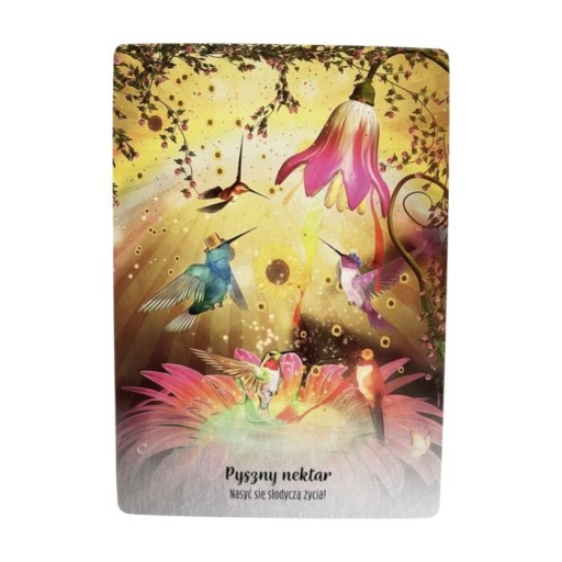Droga Kolibra to szlak lekkości i radości, ale też mocy i siły. Te karty posłużą Ci inspiracją i radą, wspomagając Cię w nawiązaniu łączności ze swoją boskością, odkrywaniu tego, co widzialne i niewidzialne, oraz zaakceptowaniu Twojej wyjątkowej, epickiej podróży w obecnym życiu. Twoim przeznaczeniem jest życie pełne błogosławieństw, a Koliber oferuje Ci swoją magiczną, łagodną mądrość, która pomoże Ci to osiągnąć. Dzięki tej łatwej w użyciu talii zanurzysz się w radosny i mistyczny świat Kolibrów. W zestawie są 44 przepięknie ilustrowane karty oraz szczegółowy przewodnik zawierający obszerne wyjaśnienia przesłań poszczególnych kart, afirmacje i ćwiczenia, dzięki którym pogłębisz swój duchowy rozwój. Rozłóż zatem skrzydła i wyrusz w cudowną, wypełnioną nektarem podróż ku bardziej świadomemu życiu, pełnemu radości i słodyczy.