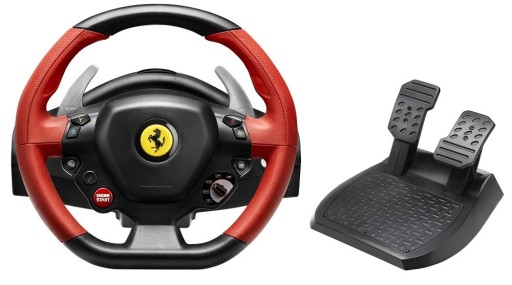 Ten model kierownicy sprzedawany jest w komplecie z dużym, regulowanym zestawem pedałów. Zostały one wyposażone w szeroki podnóżek. Pedał hamulca korzysta z oporu progresywnego. Atutem produktu jest także możliwość przeprowadzenia regulacji nachylenia każdego pedału. Wszystko to zapewni przeżycia bliskie temu, co można czuć w kabinie prawdziwego Ferrari.