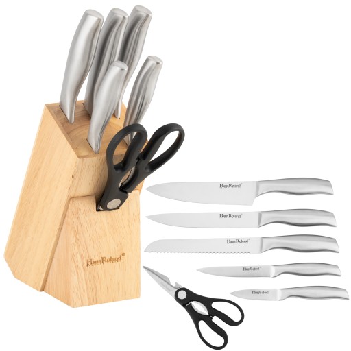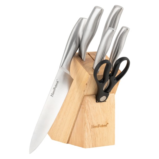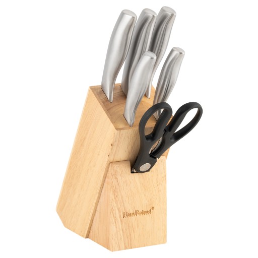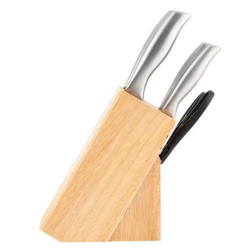 НАБОР ИЗ 5 НОЖЕЙ В ДЕРЕВЯННОМ БЛОКЕ + КУХОННЫЕ НОЖНИЦЫ 7 ЭЛЕМЕНТОВ.