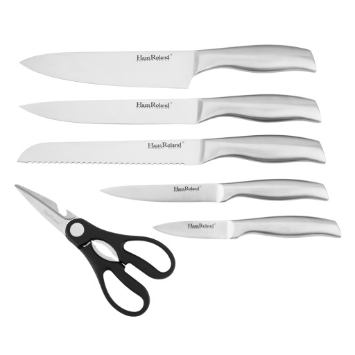 KOMPLET SKŁADA SIĘ Z 4 NOŻY , 1 OBIERAK ORAZ NOŻYCZKI :