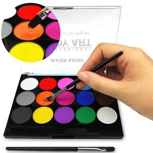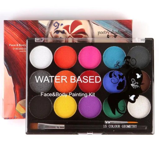 FARBY FARBKI DO MALOWANIA TWARZY i CIAŁA 15 KOL. ZMYWALNE DZIECI + SZABLONY